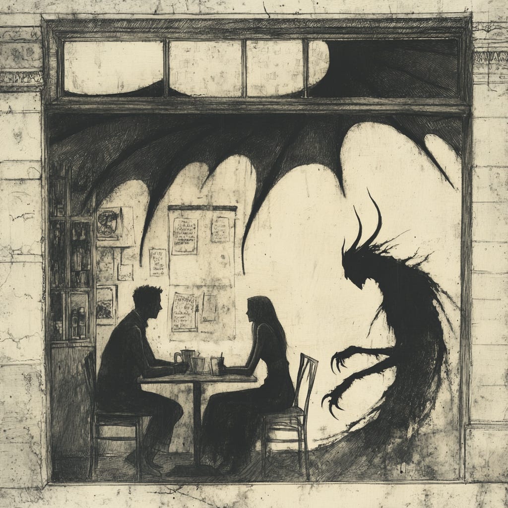 Klaern turned around and stared at me. I felt Jared tense up even as he pushed a cup of coffee across the counter to the newcomer.